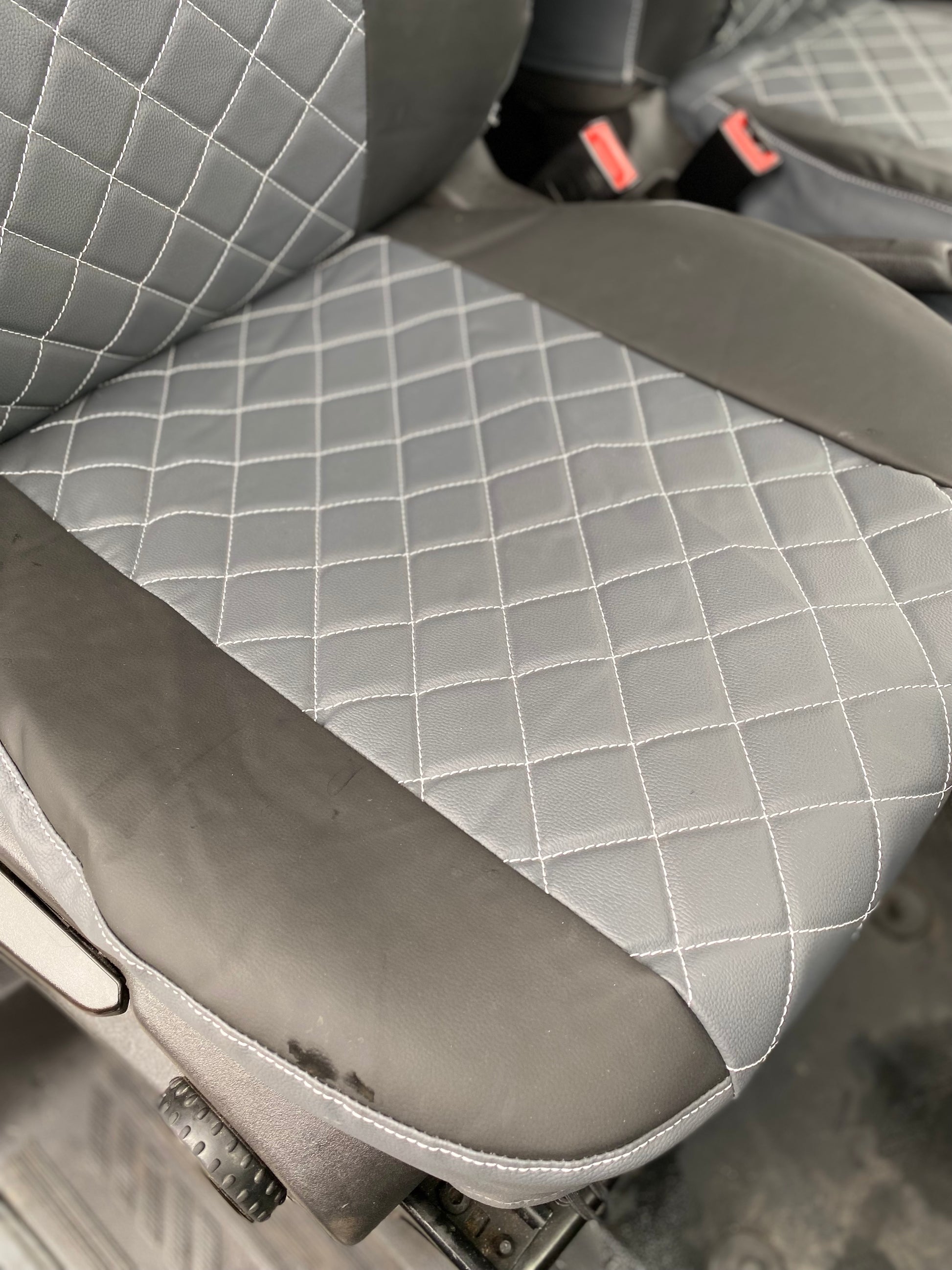 Introducing our collection of Ford Transit Custom leatherette seat covers that enhance and protect your vehicle's interior while providing style and durability. These seat covers seamlessly fit into your Transit Custom's seats, thanks to their impeccable engineering using high-quality materials. Moreover, they are designed to withstand daily wear and tear, ensuring optimal comfort and support for drivers and passengers.